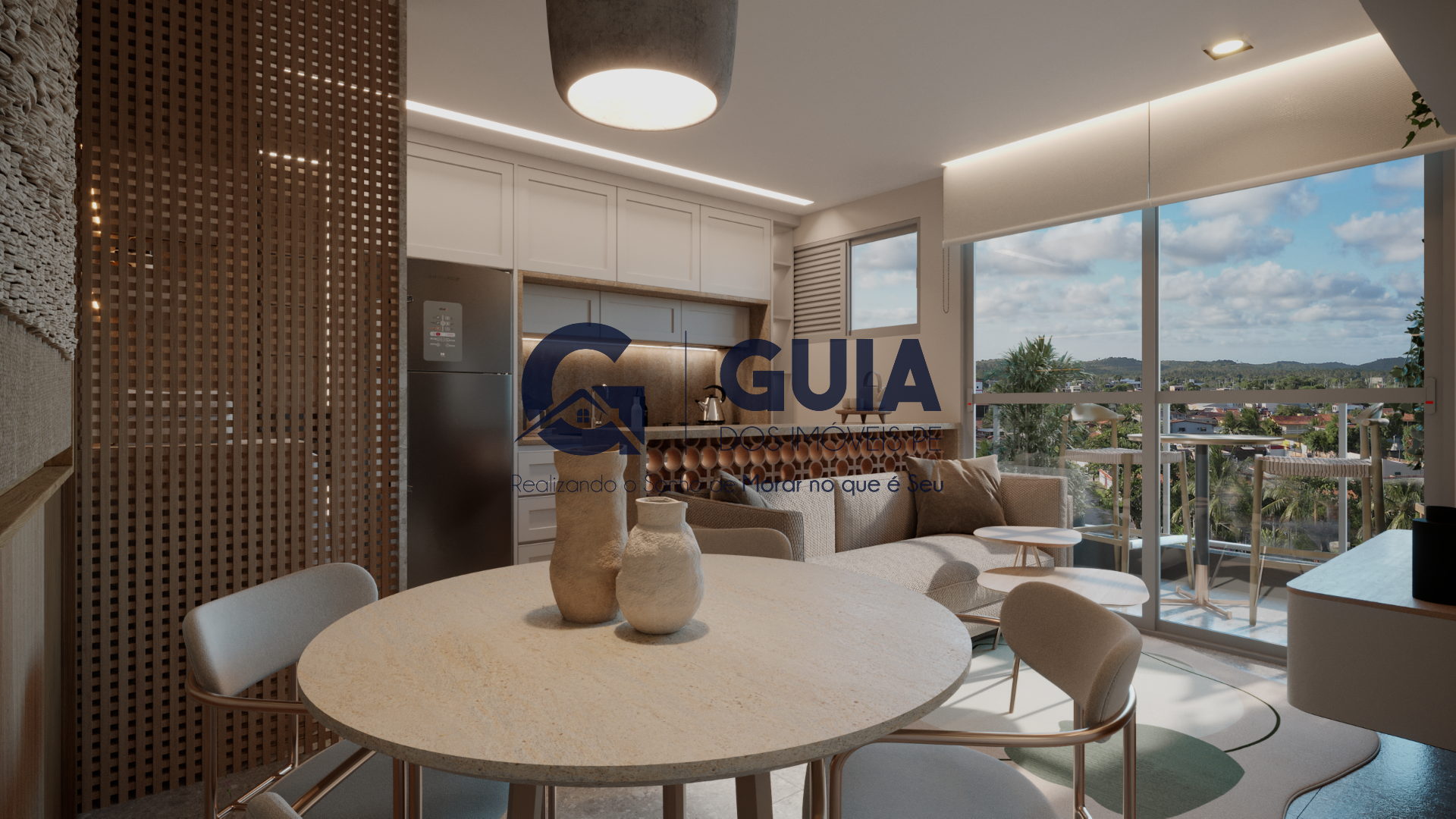 * Sala integrada à cozinha;